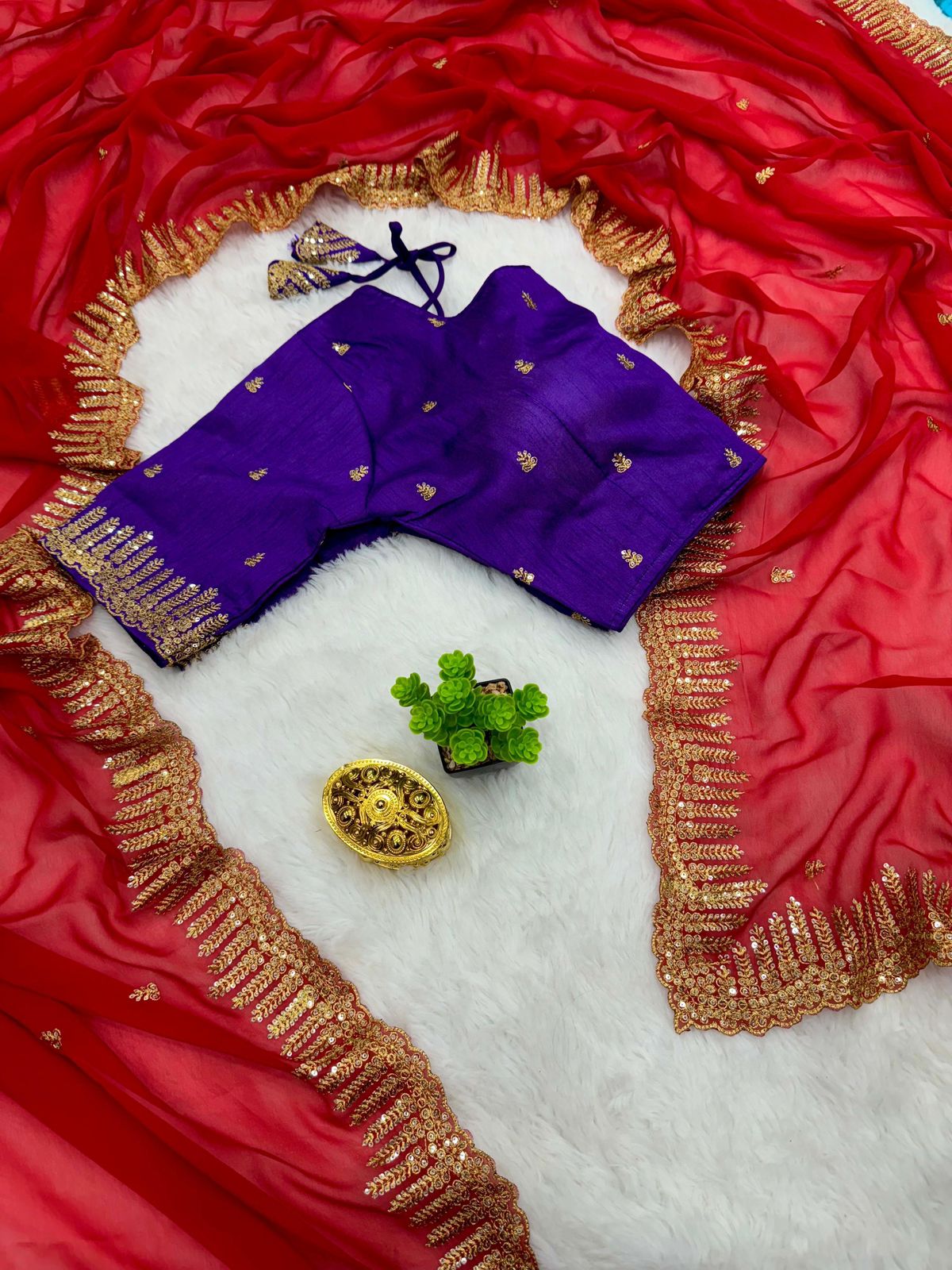 Women's Designer Party Wear Designer Red Soft Georgette Saree