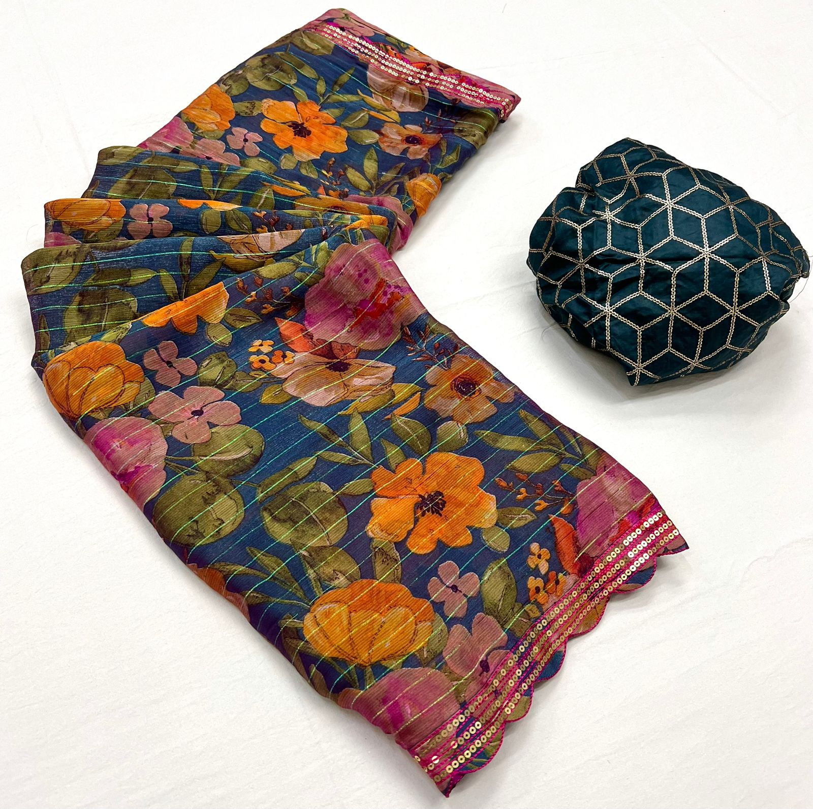 Women's Designer Party Wear Soft 3D Velvet Chiffon Saree
