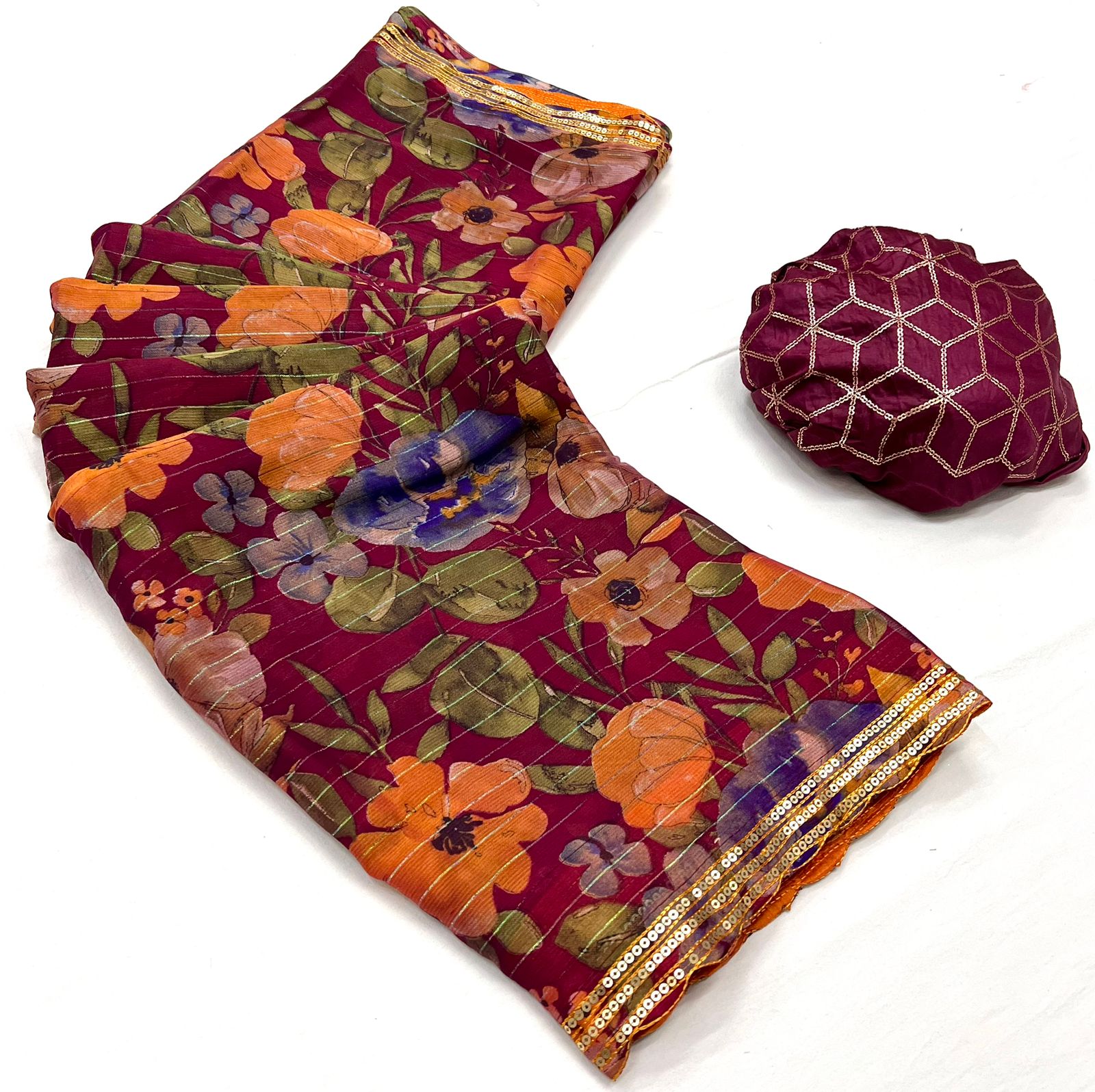 Women's Designer Party Wear Soft 3D Velvet Chiffon Saree