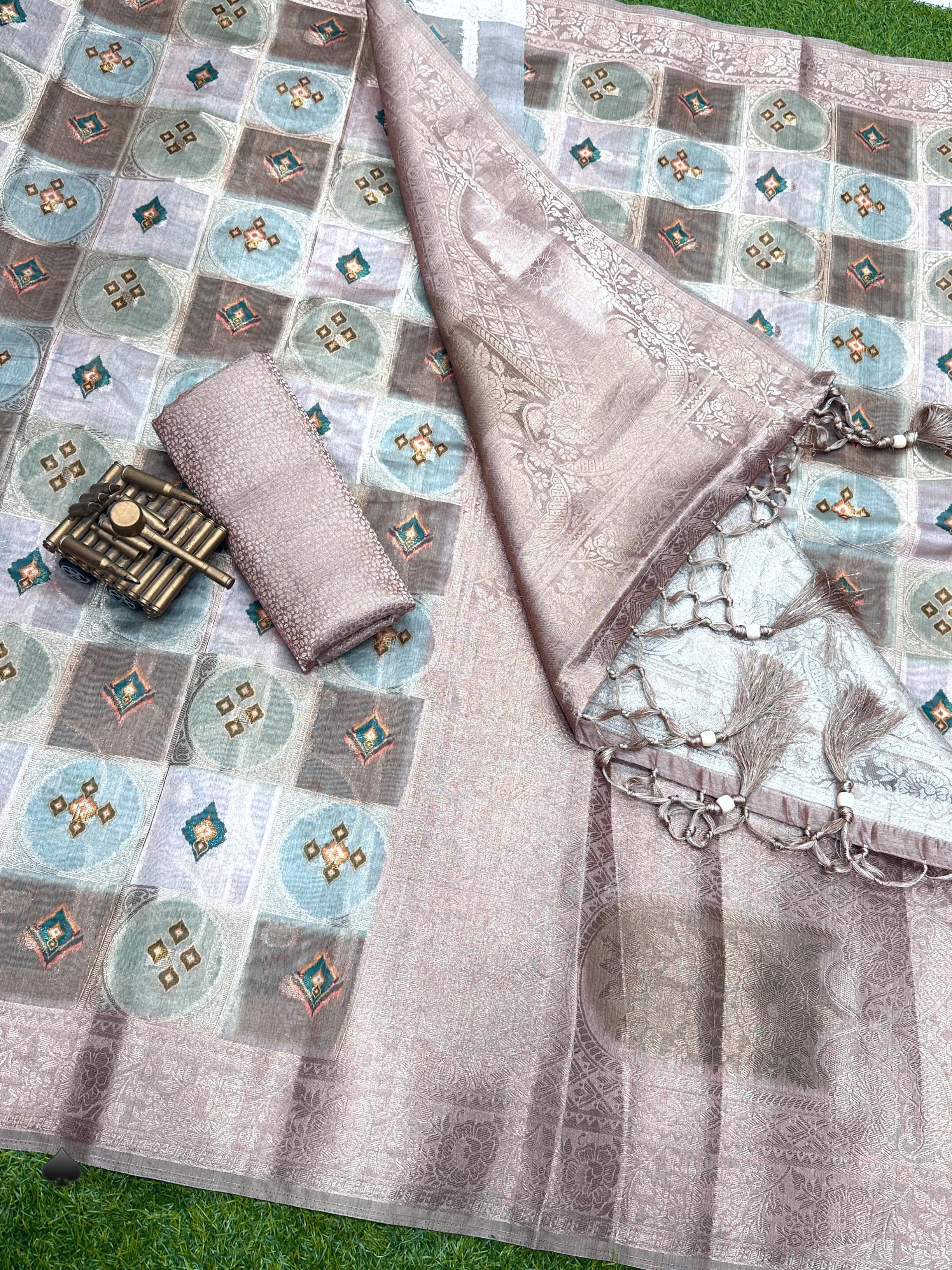 Pattern Position Print With Multi Zari Jacquard & tussels in Pallu