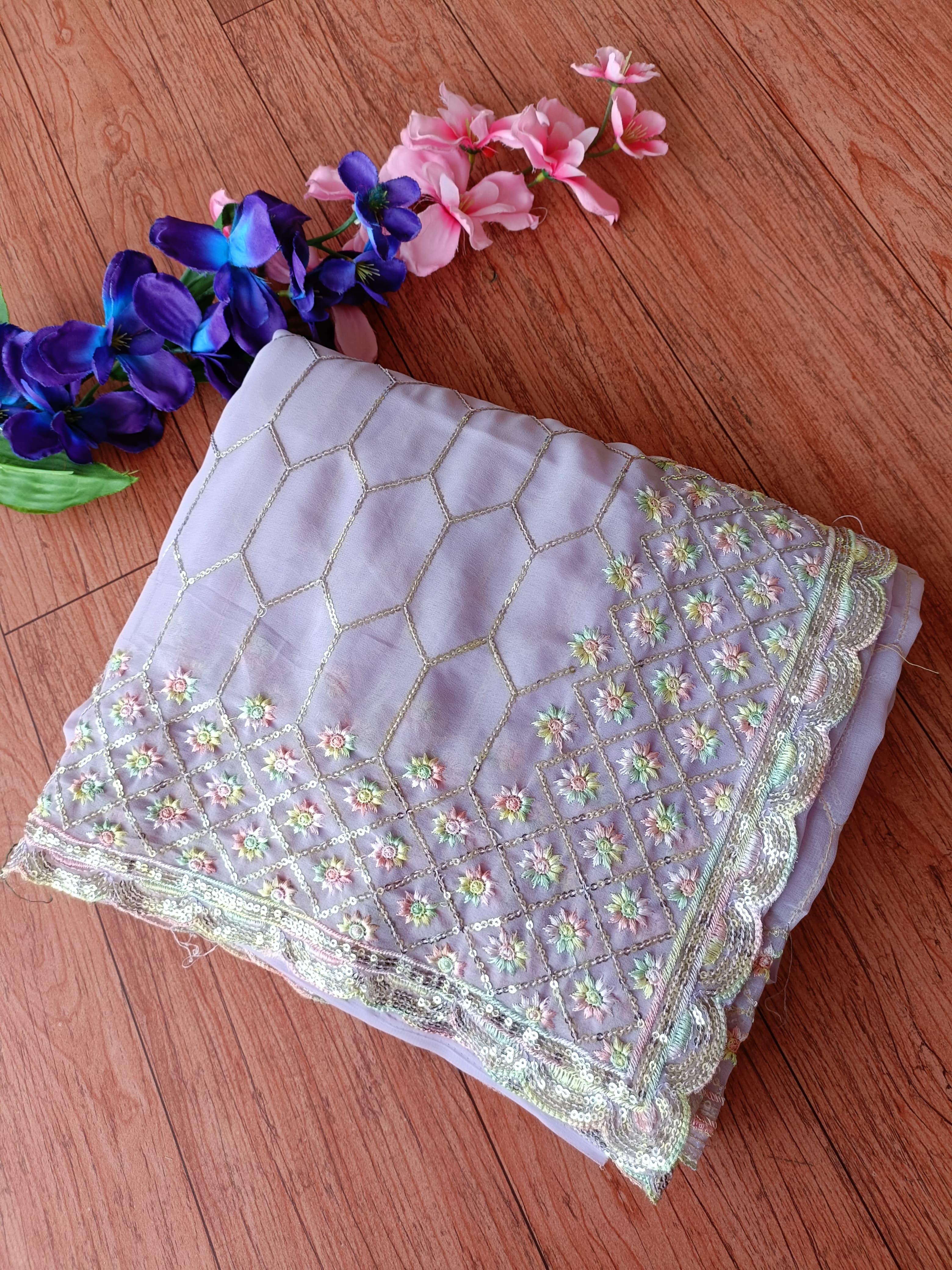 SAREE FABRIC: Fox Georgette with sequence and thread work.