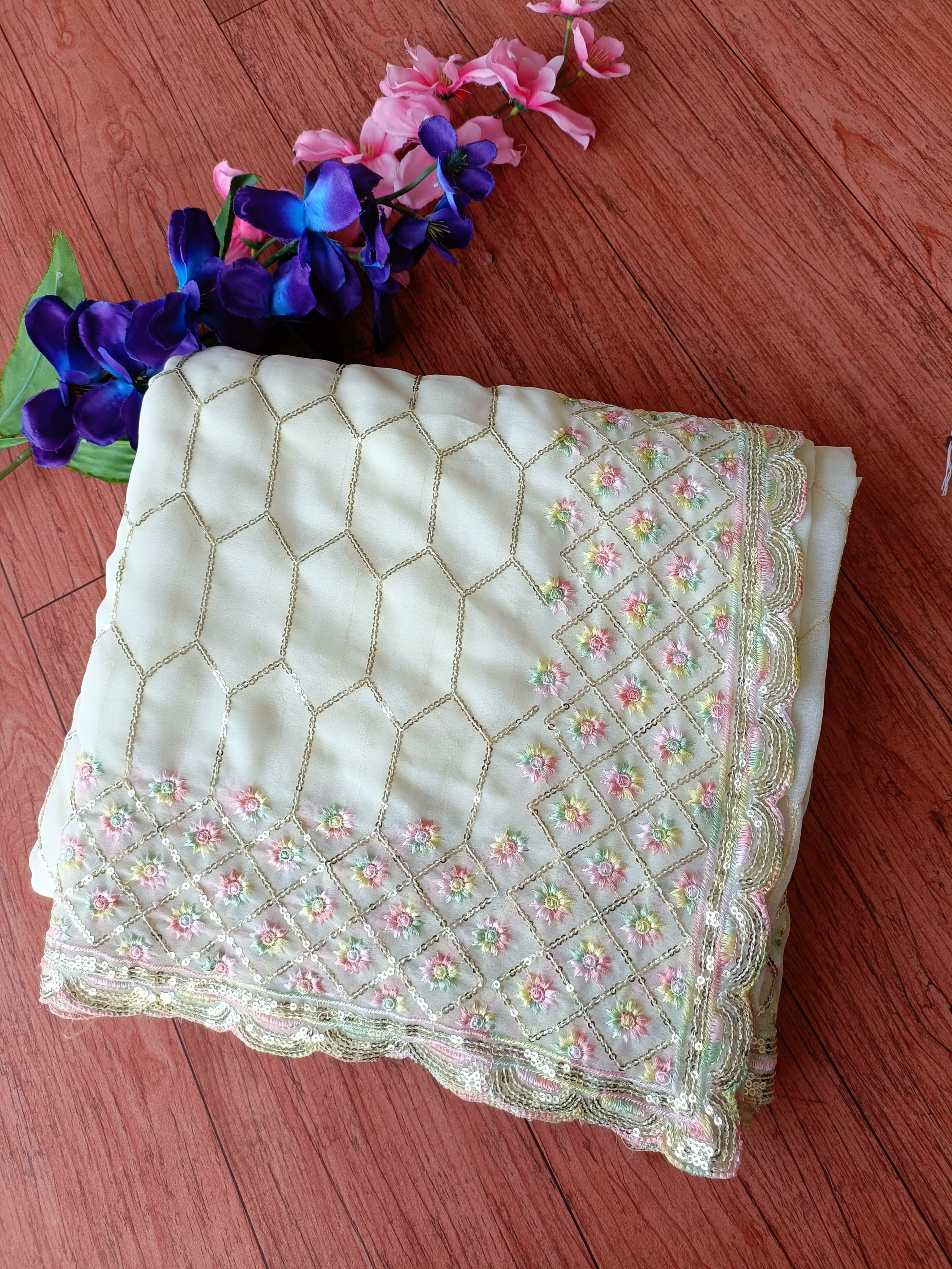SAREE FABRIC: Fox Georgette with sequence and thread work.