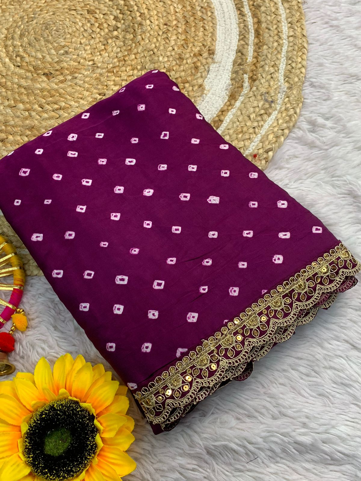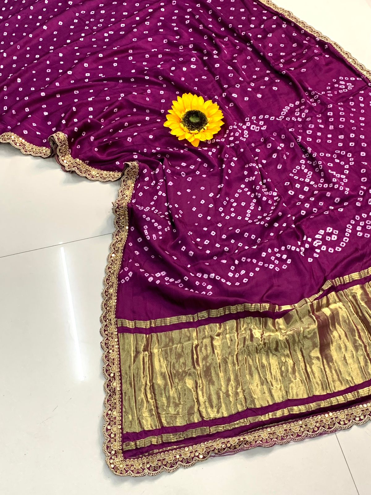 • Women's Designer Traditional Gajji Silk Pallu Lagdi Pata Saree