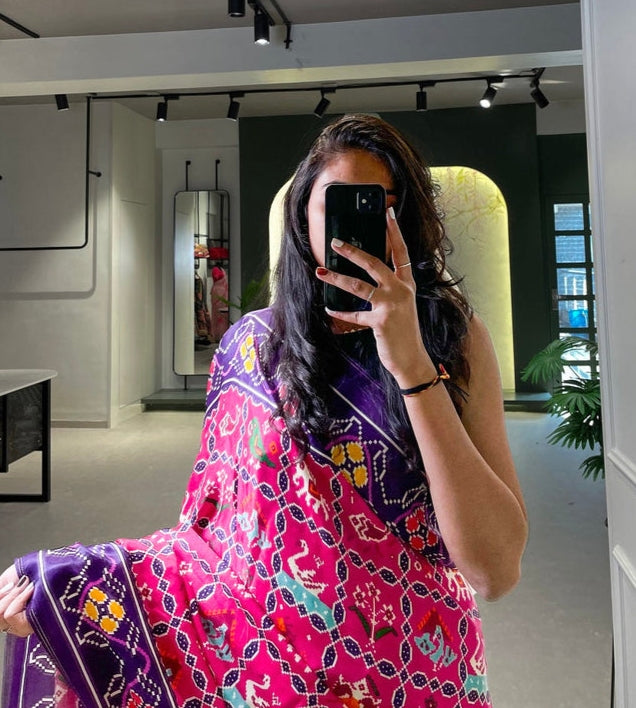 Women's Designer Pink Color Patola Printed Pure Gaji Silk Saree