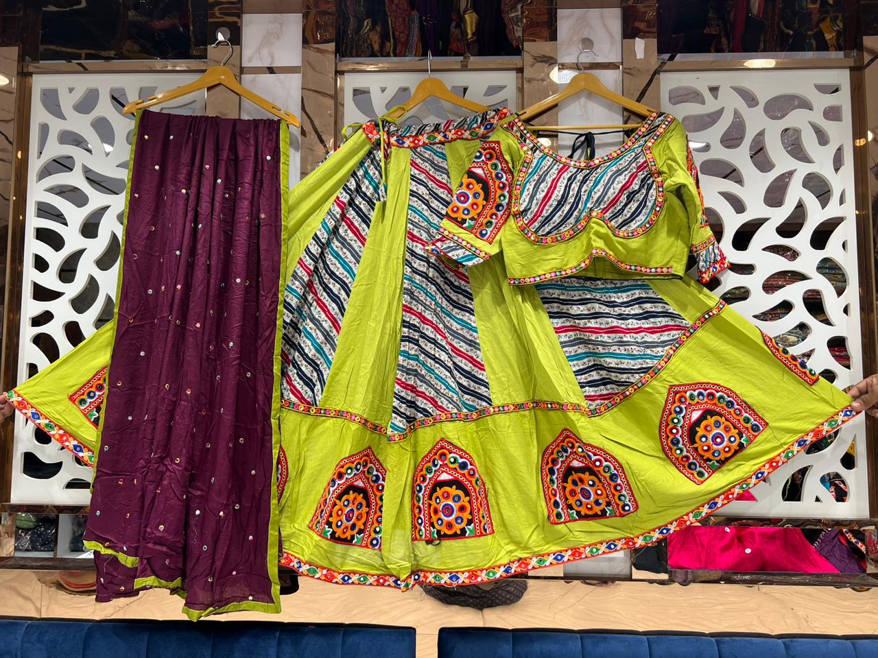 5 Mtr Flair Base With Gamthi Patch In Skirt with Laheriya Rayon Cotton Combination