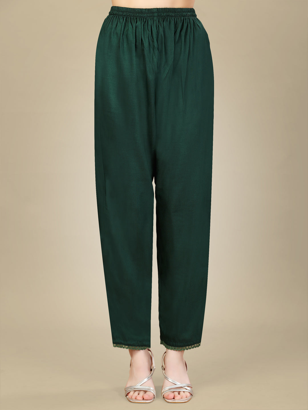 Dark Green Rayon Print with Embroidery & Sequence Work Kurti Set