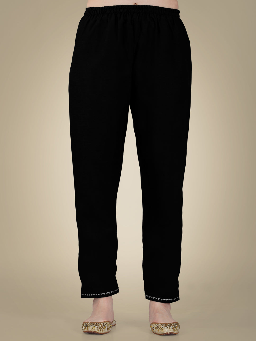Black Rayon Print with Embroidery & Sequence Work Kurti Set loading