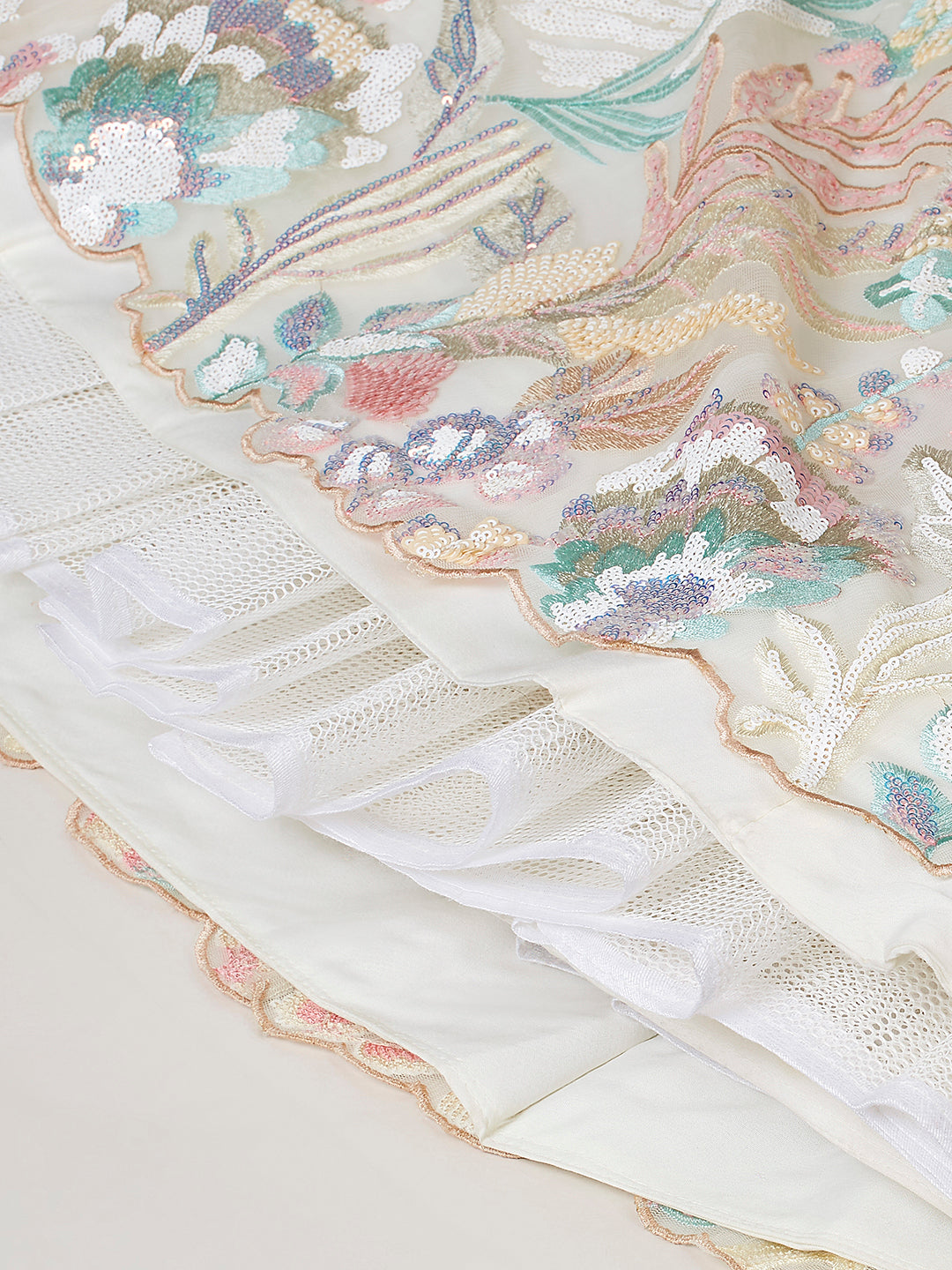 Cream Floral Net Sequin Work Lehenga & Unstitched Blouse with Dupatta
