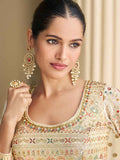 Cream Heavy Embroidered Georgette Anarkali Gown with Dupatta
