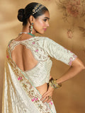 Cream Pure Georgette Saree with Lucknowi, Cut Dana & Heavy Work