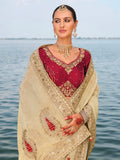 Cream Pure Jaquard Saree with Cut-Dana, Mirror & Jarkhan Heavy Work
