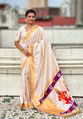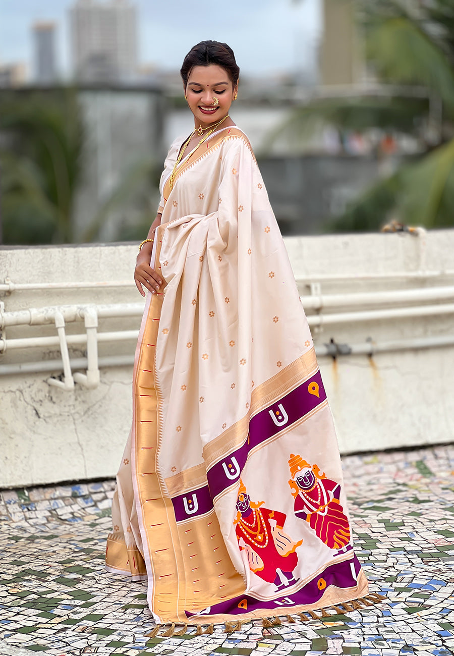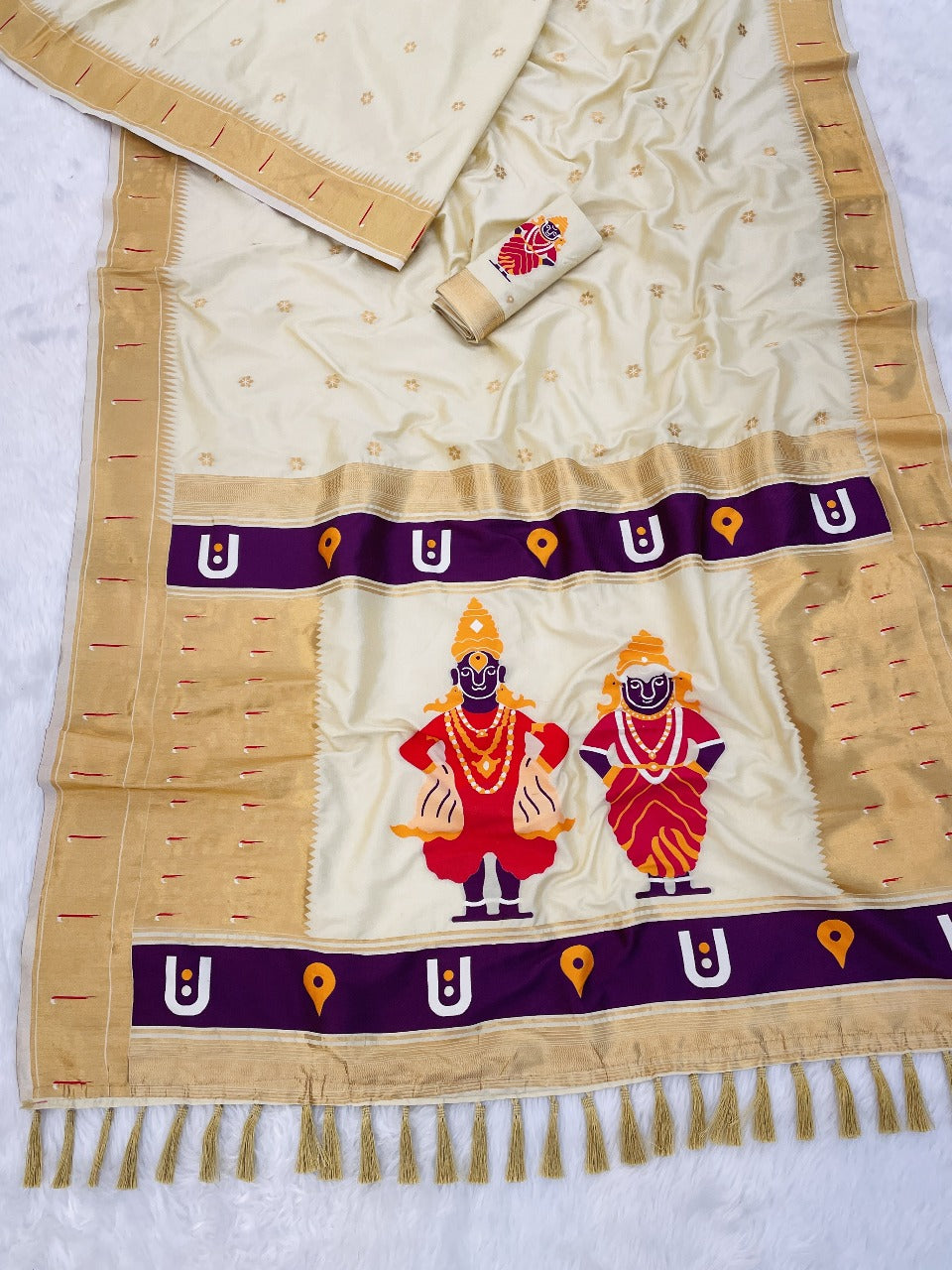 Cream Zari Woven Vitthala God Special Paithani Silk Saree