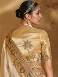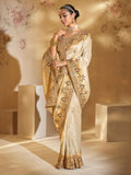 Cream Ziraf Silk Saree with Mirror, Moti & Jardoshi Heavy Work