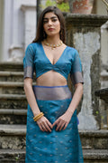 Cyan Blue Pure Soft Kalyani Silk Saree
