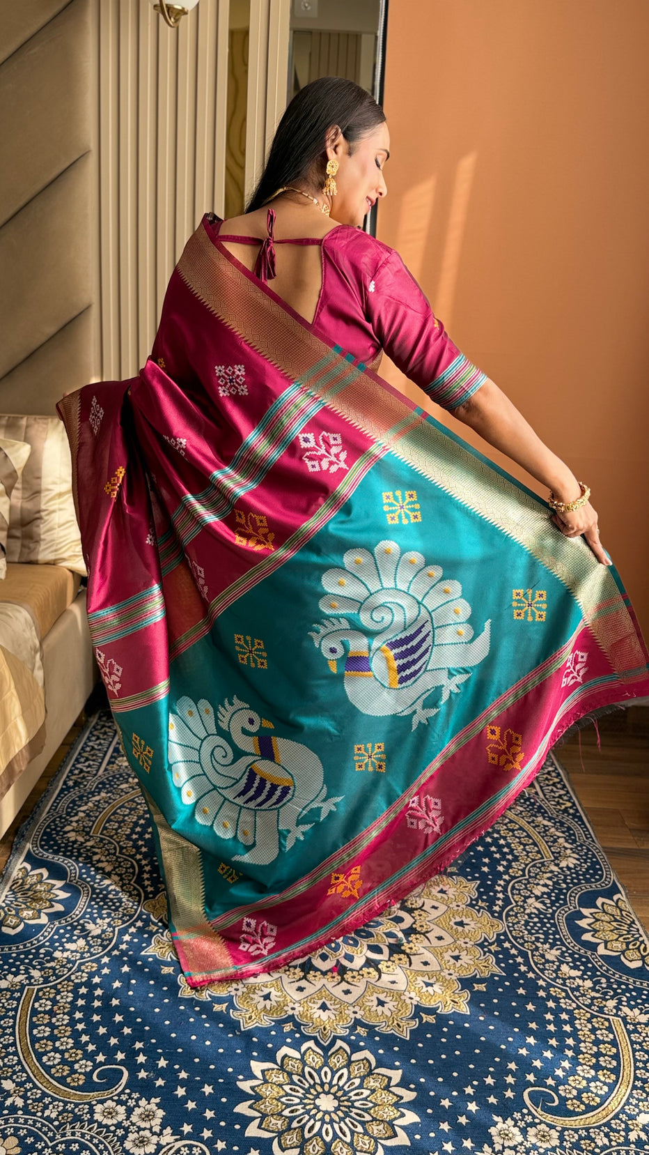 Dark Pink Soft Silk Ikkat Zari Patola Soft Silk Saree