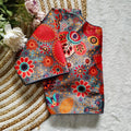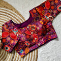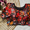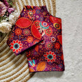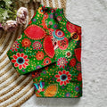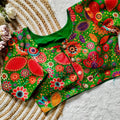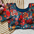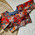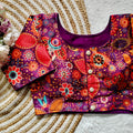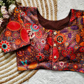 Pure silk fabric with Decent print all over blouse with vintage look button
