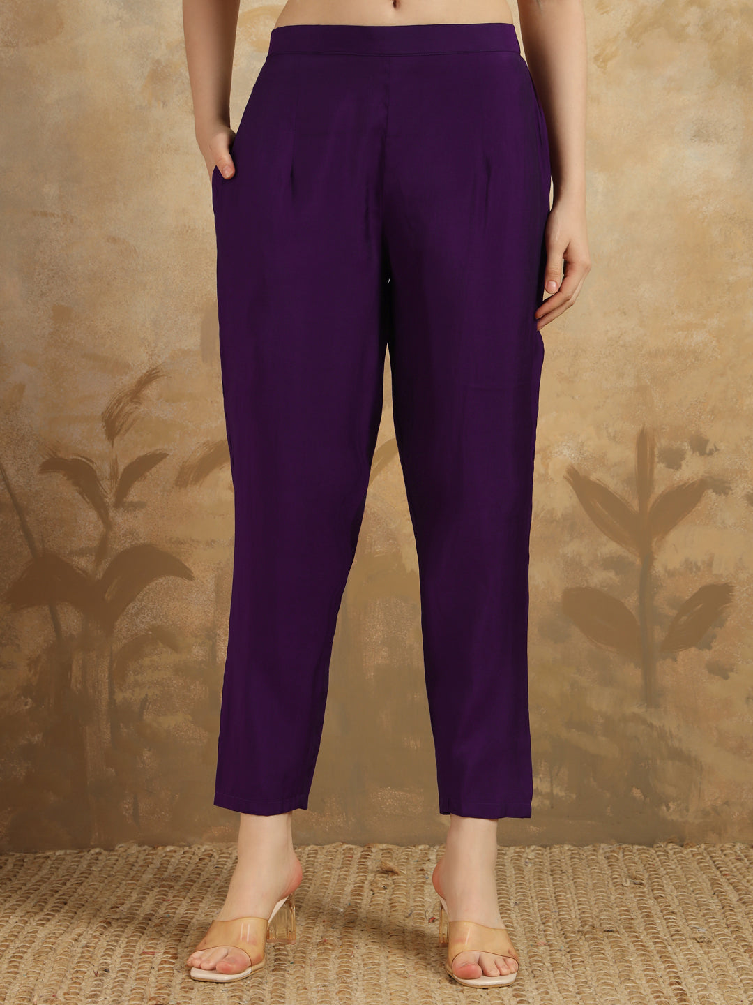 Elevate your ethnic wardrobe with this exquisite deep purple Chanderi kurti set, meticulously designed for elegance, comfort, and versatility. This three-piece ensemble features a beautifully embroidered neckline, subtle embellishments, and a digitally printed Tebby dupatta, making it a perfect choice for festive occasions, weddings, office wear, and formal gatherings.
