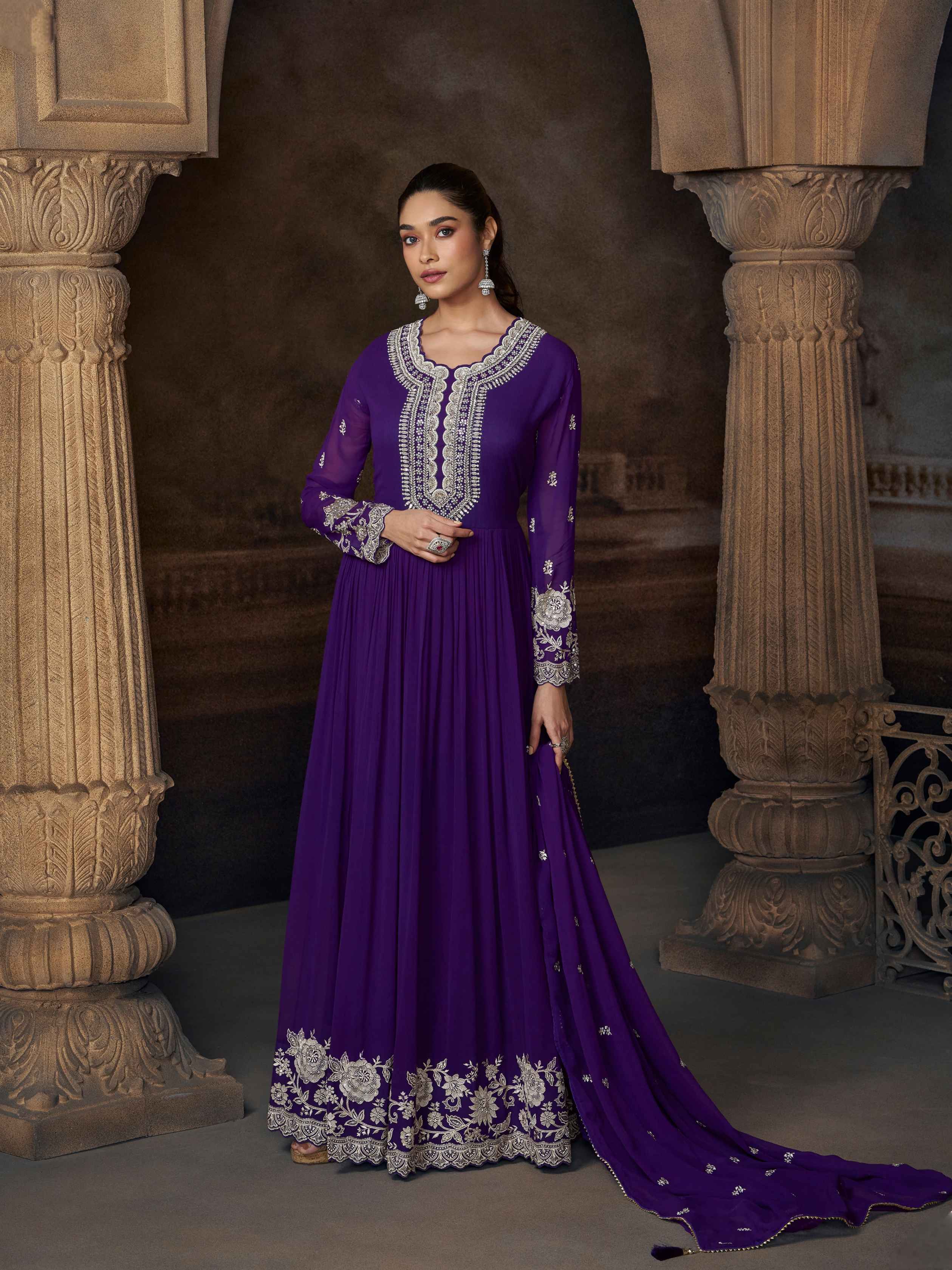Designer Embroidered Georgette Anarkali Gown with Dupatta