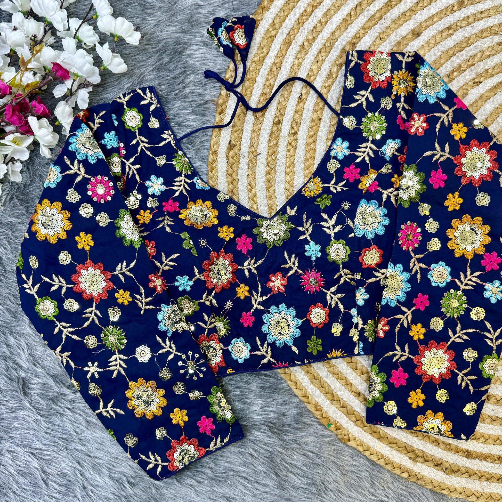 Designer Readymade Long Sleeves Multi Thread With Sequence Work Blouse