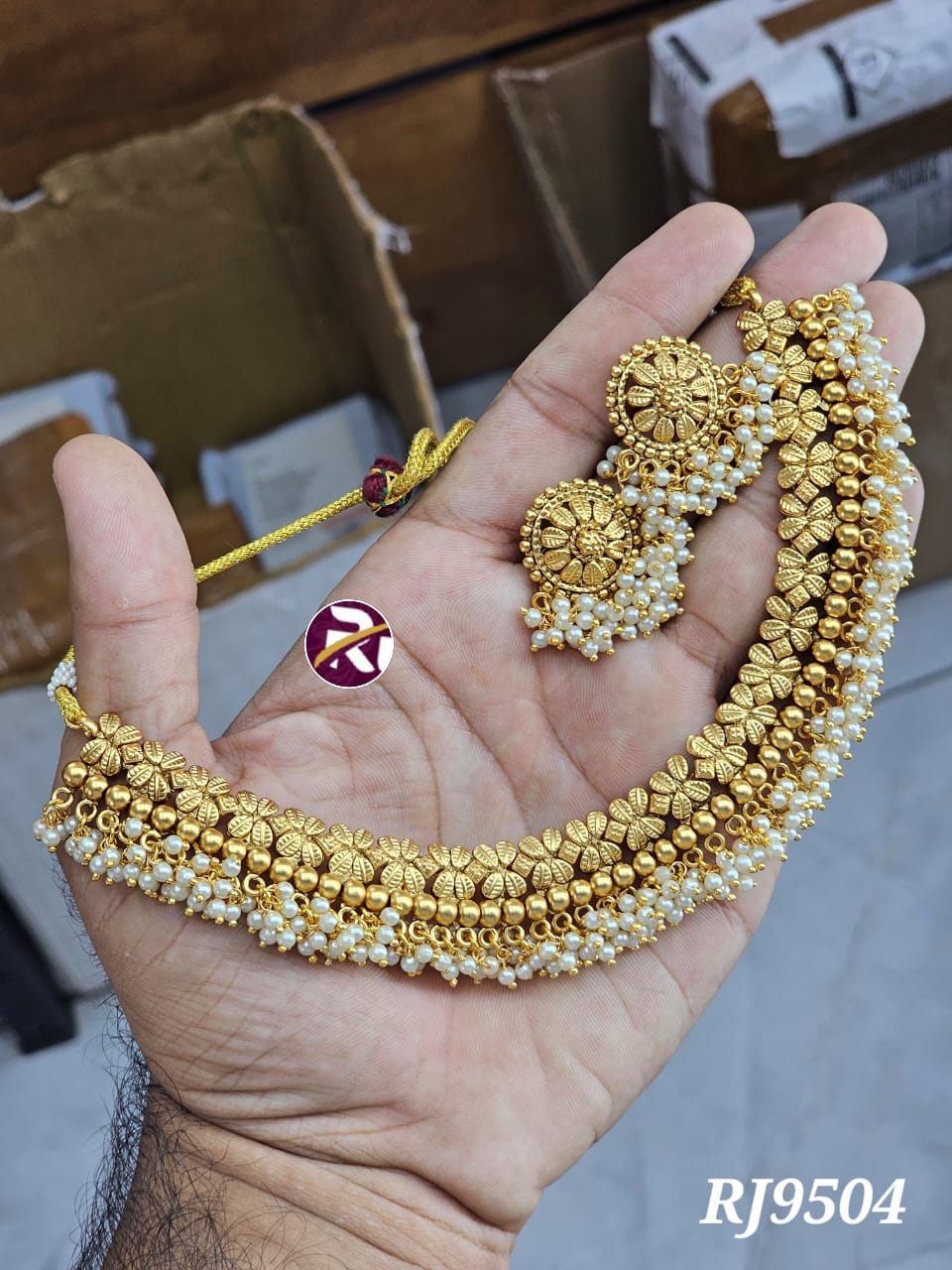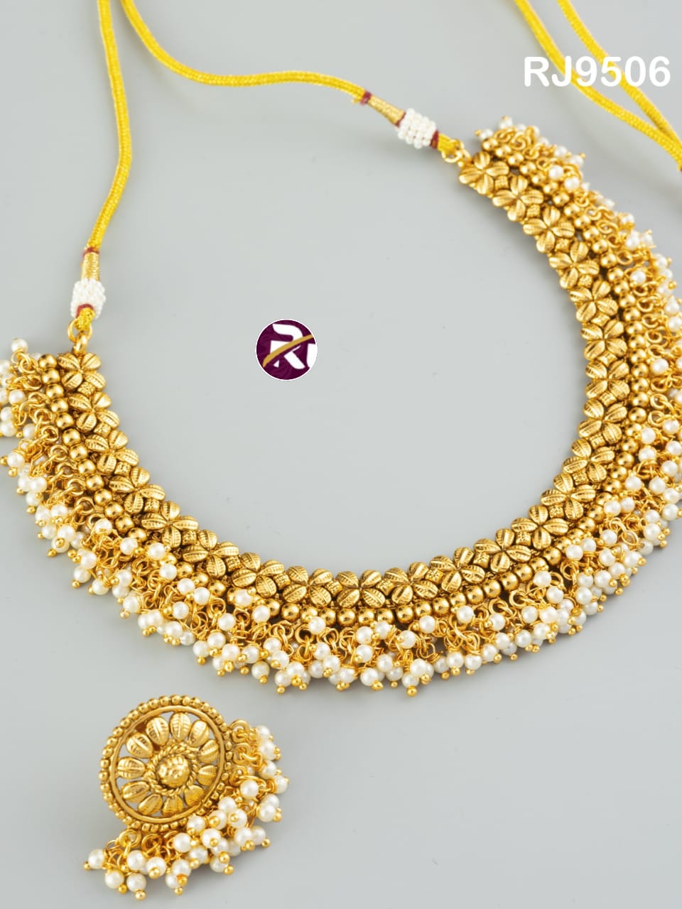 Beautiful Designer High Gold Antique Rj Rajwadi Moti Choker Set with Earrings