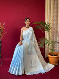 Designer Upasna Pure Linen Lucknowi Weaving Saree