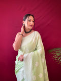 Lucknowi based Weaving on border and pallu.