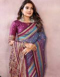 Dusty Blue Pure Handloom Kalamkari Silk Saree