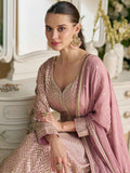 Dusty Pink Embroidered Georgette Anarkali Gown with Dupatta