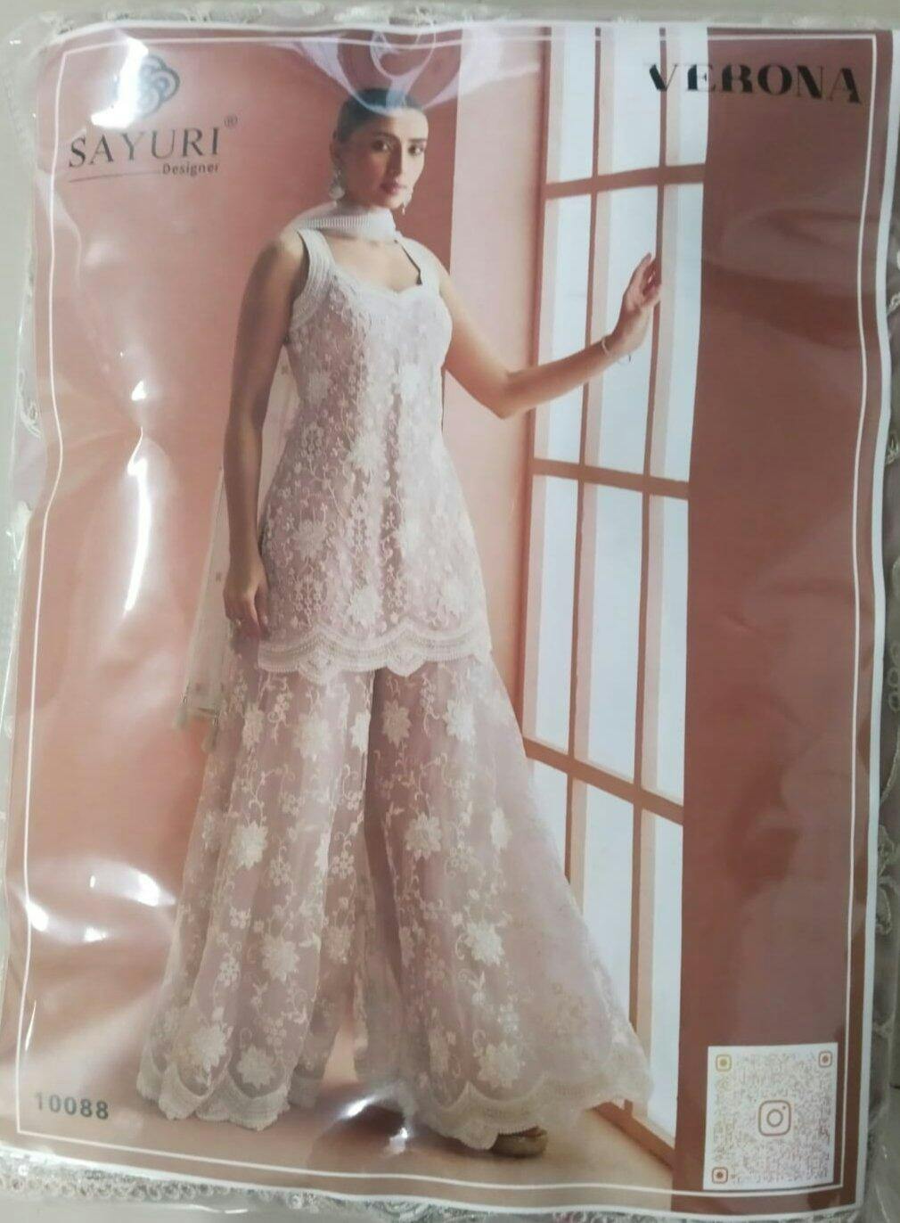 Dusty Pink Net Embroidered Sharara Suit with Bead Work