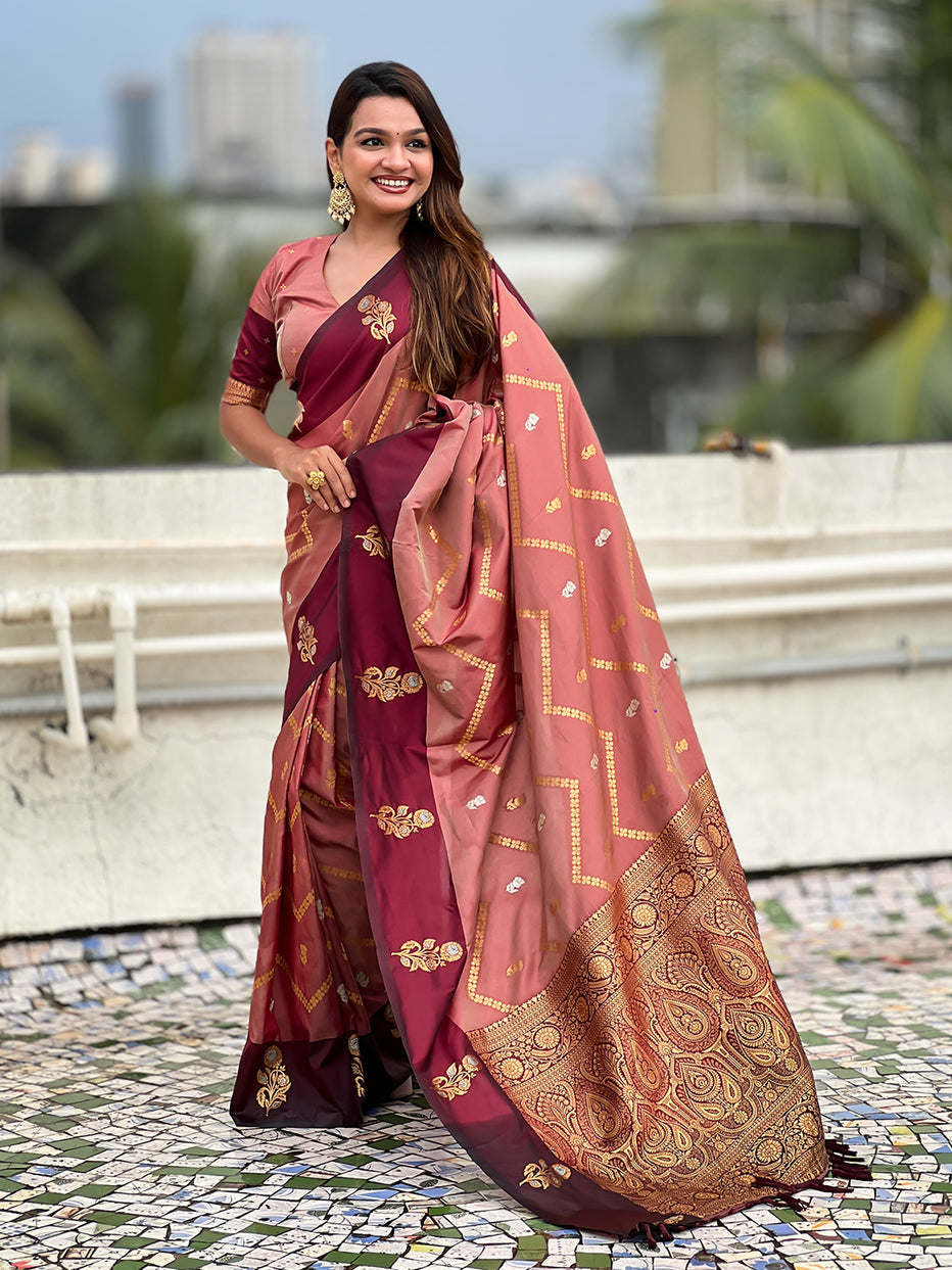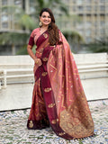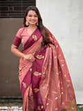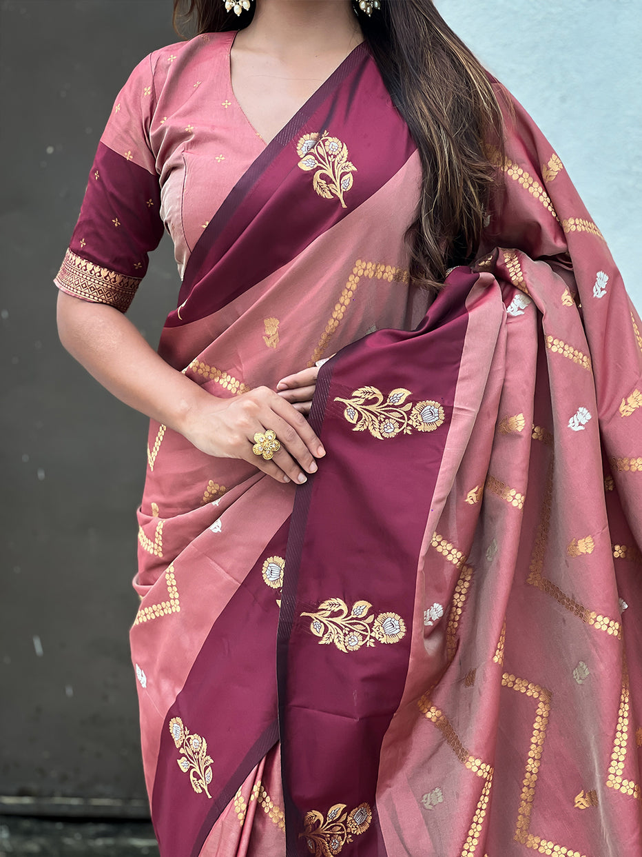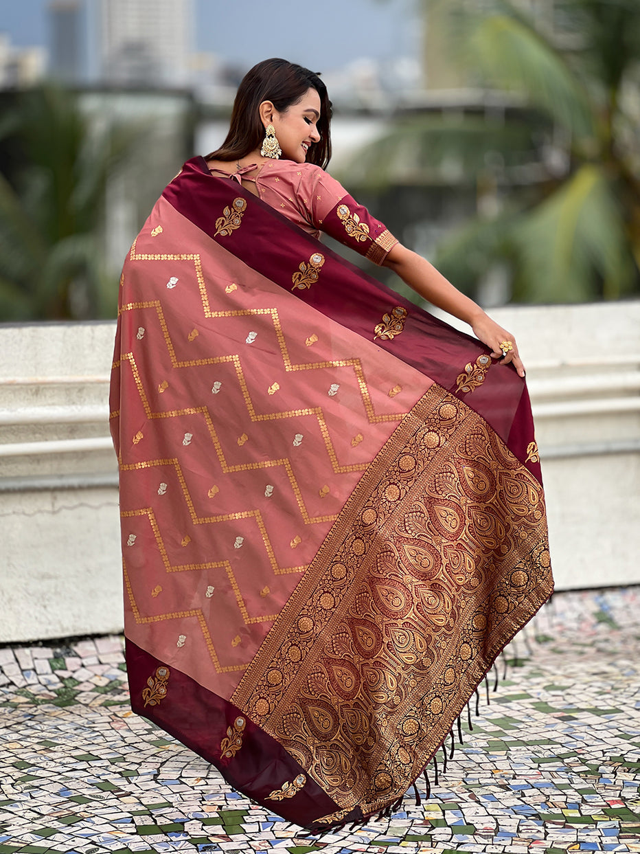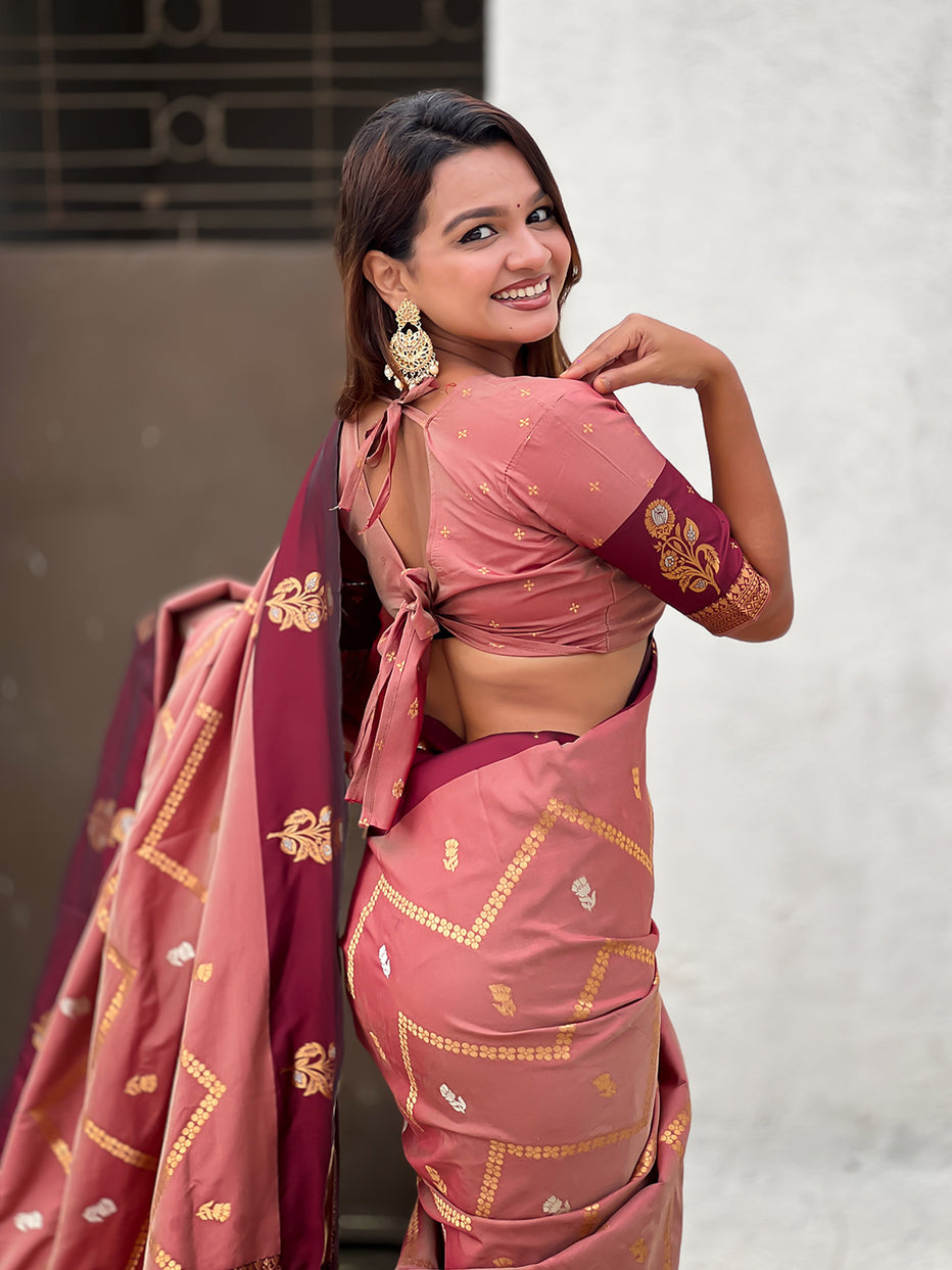 Dusty Pink Soft Silk Dusty Concept Zig Zag Zari Woven Saree
