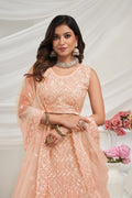 Step into elegance with our stunning Peach Soft Net Lehenga Choli Set. Designed for the contemporary bride, this exquisite ensemble blends traditional craftsmanship with modern style. Ideal for weddings, festivals, sangeet nights, and other grand celebrations, this lehenga set ensures you make a lasting impression.