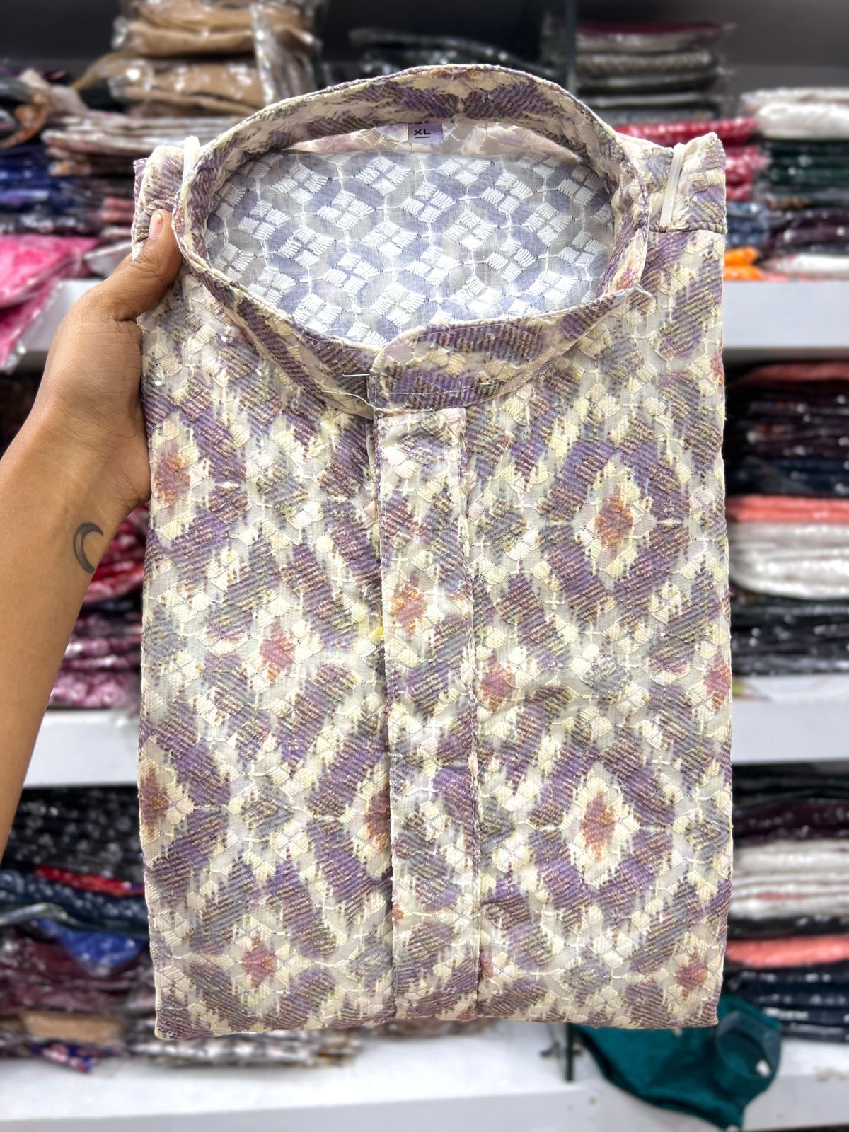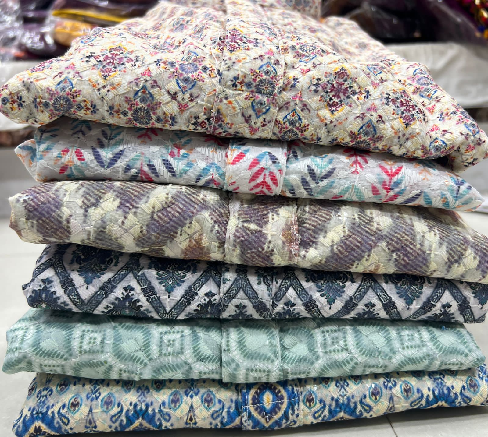 Fabric :- Heavy Cotton Schiffli Chikan work with Sequence & Print