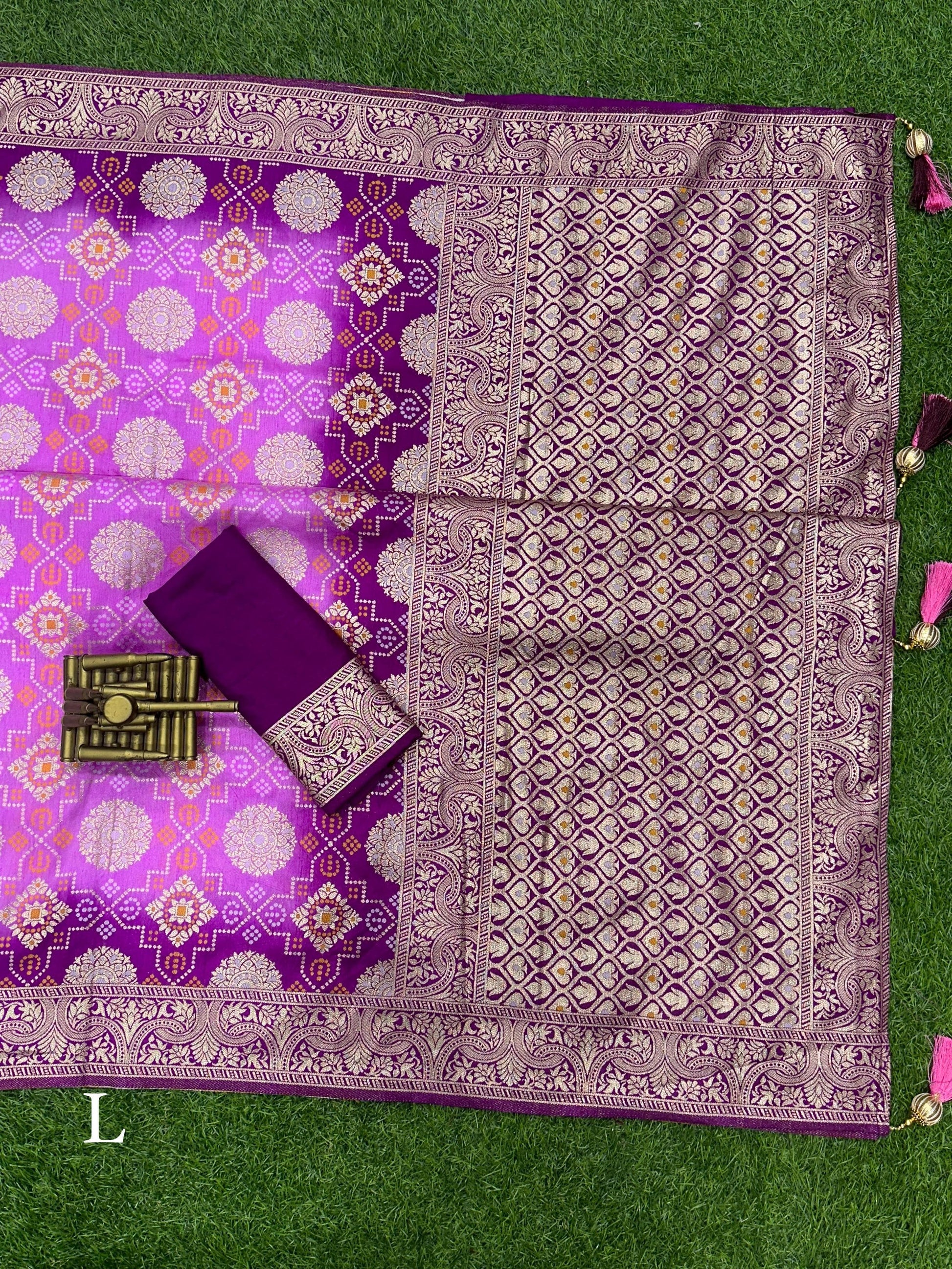 SAREE- Pedding color combination with zari and minakari weaving jacquard & tussles in pallu.