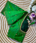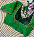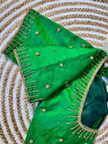 Beautiful golden handcrafted work all over sleeves with heavy work in back side neck of blouse