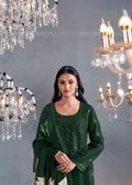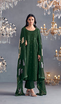 Forest Green Straight Suit with Embroidered Organza Dupatta