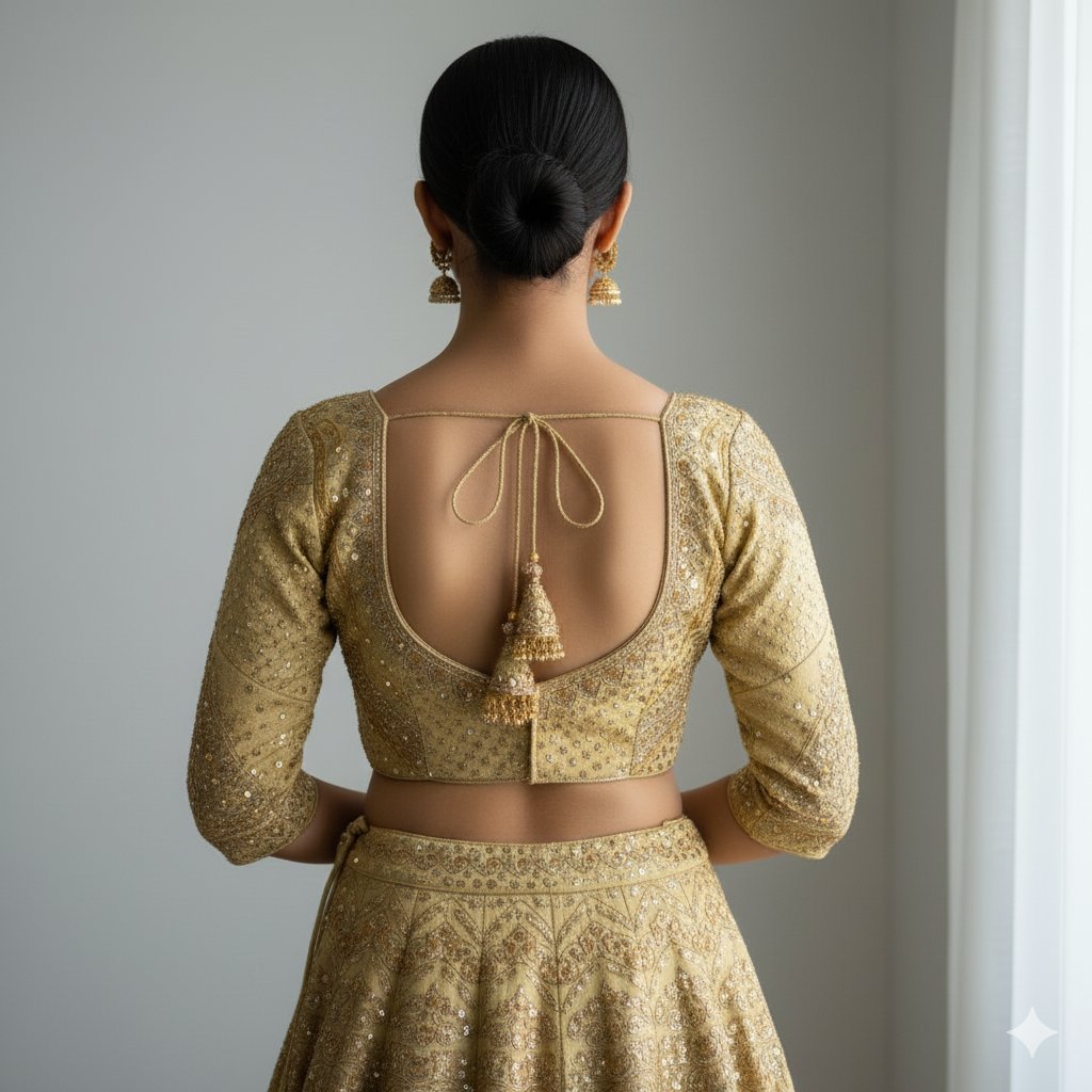 Gold Pure Roman Silk Sabyasachi Style Bridal Blouse