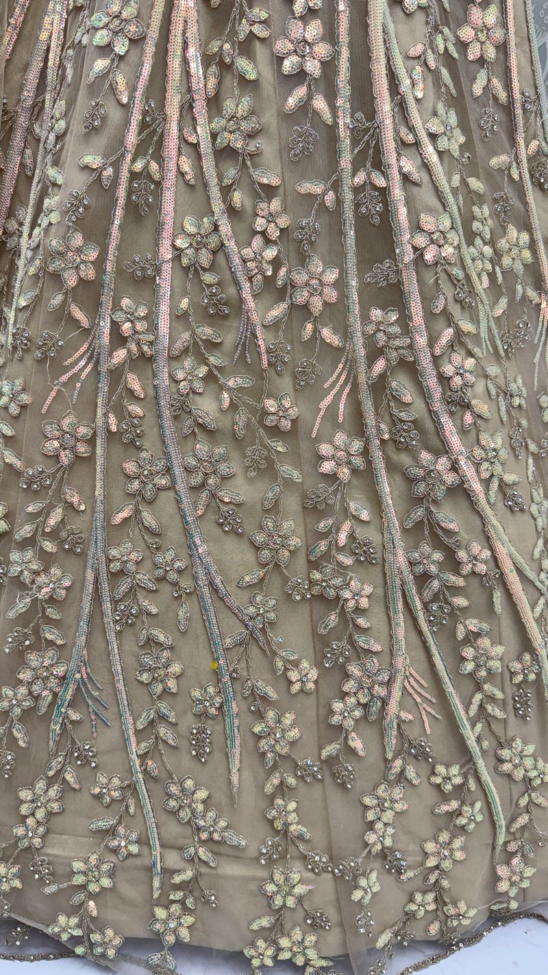 Golden Pure Soft Net Heavy Embroidery Work Bridal Lehenga