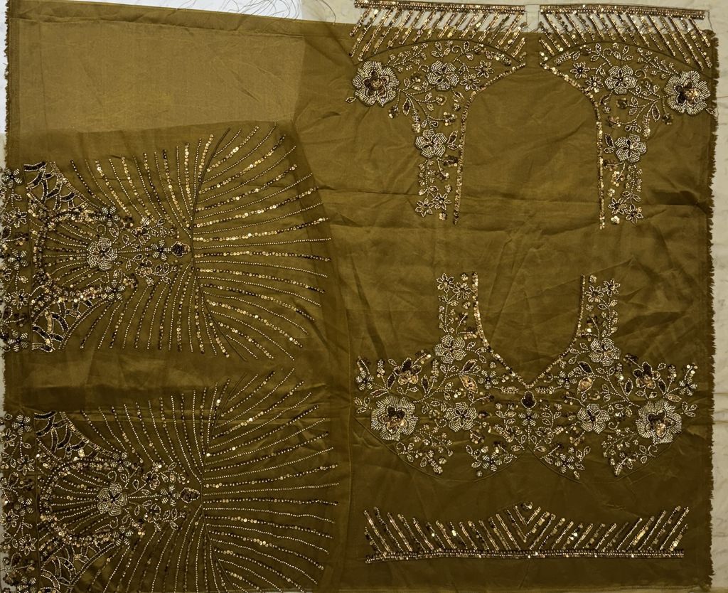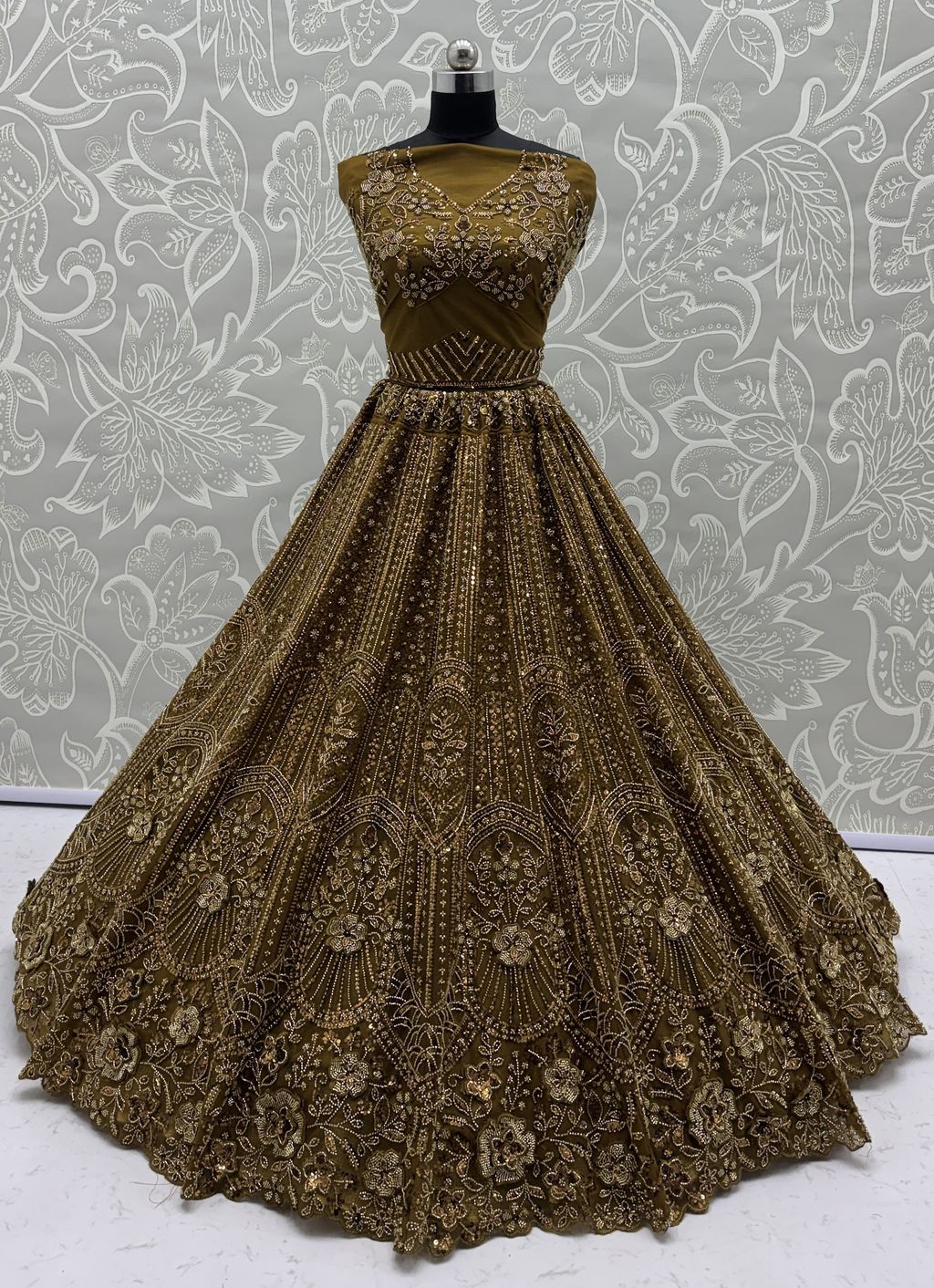 Golden Pure Soft Net Heavy Embroidery Work Bridal Lehenga