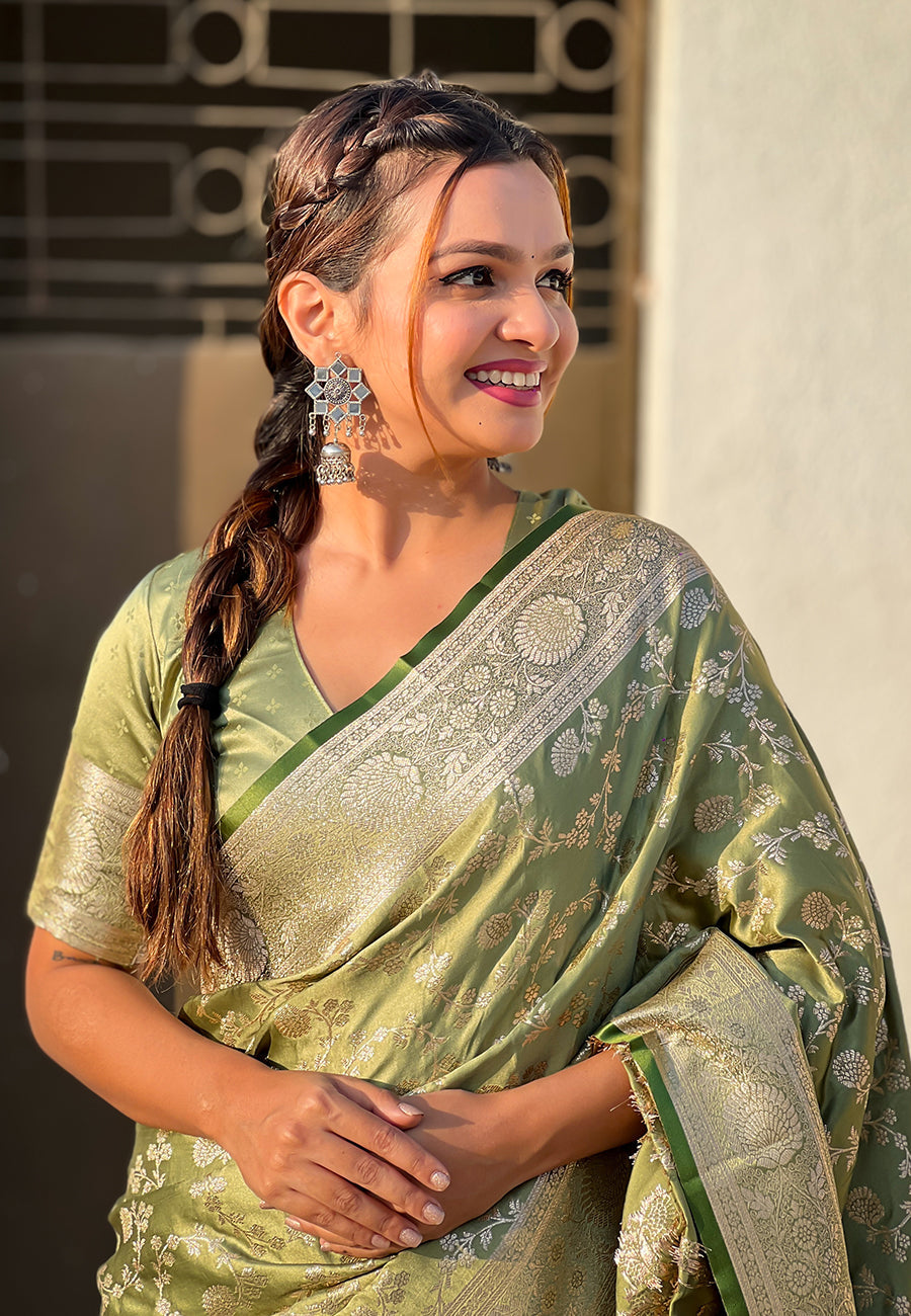 Green Banarasi Satin Silk Zari Banarasi Saree