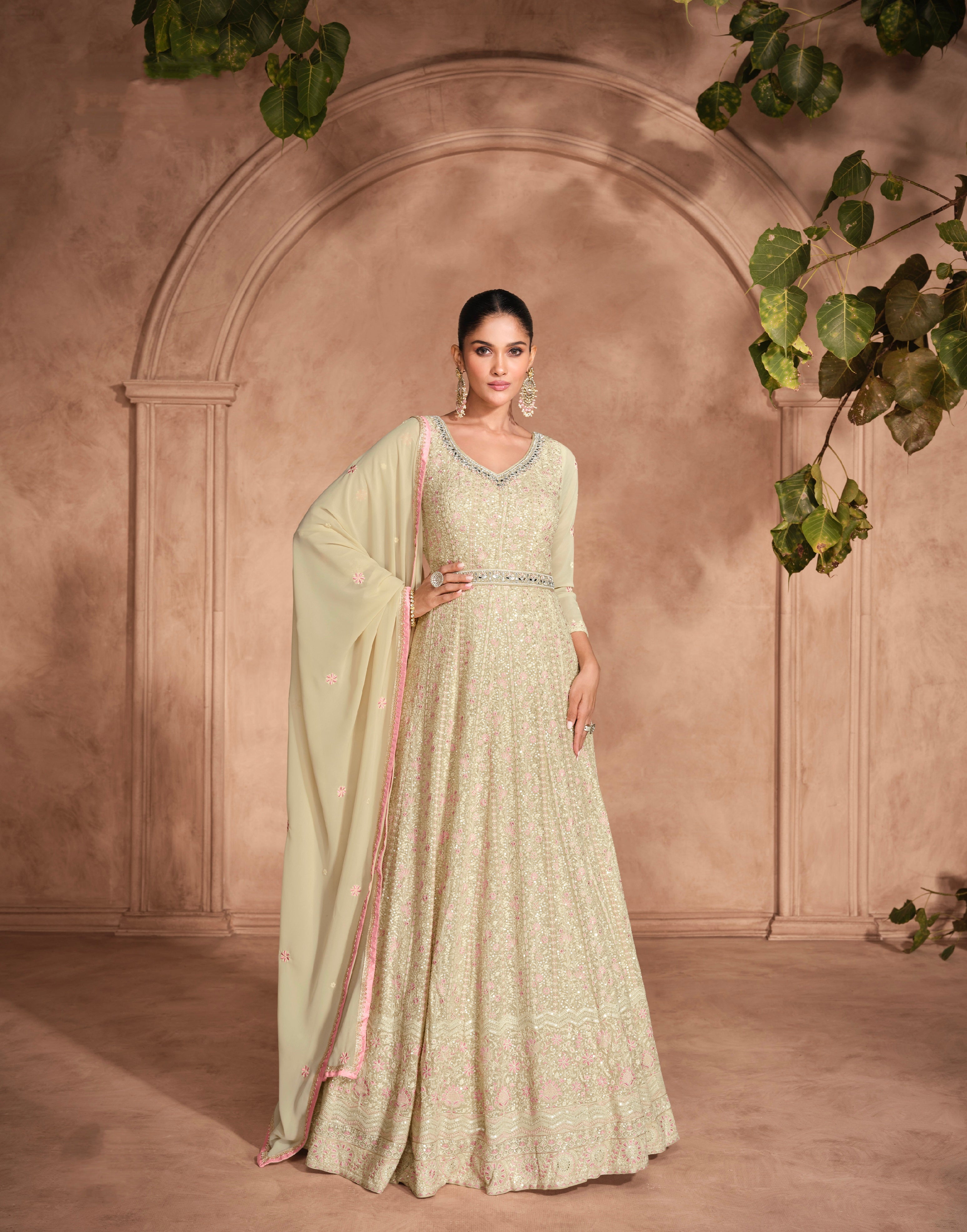 Green Chikankari Embroidered Georgette Anarkali Dress with Dupatta