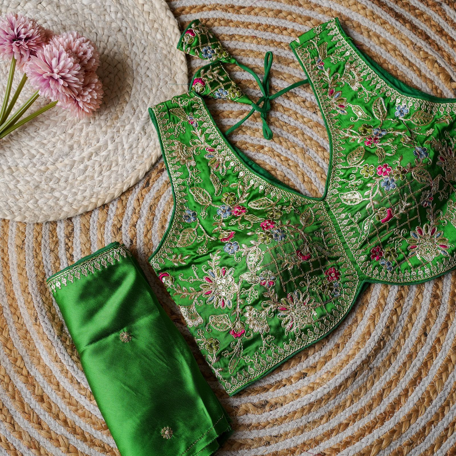 Green Heavy Pure Cosmos Silk Sequins Bridal Blouse