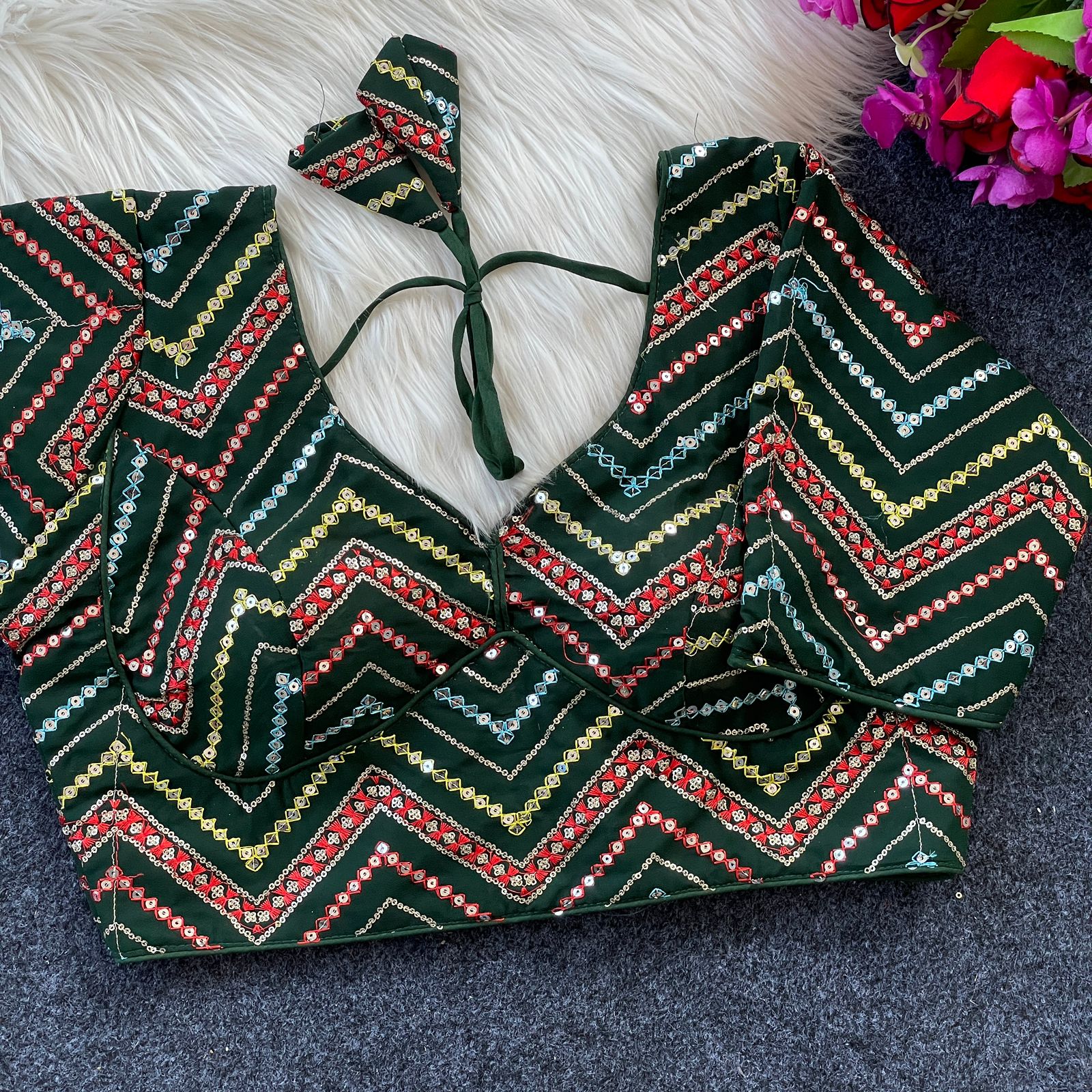 Green Pure Georgette Viscose Sabyasachi Style Wedding Blouse