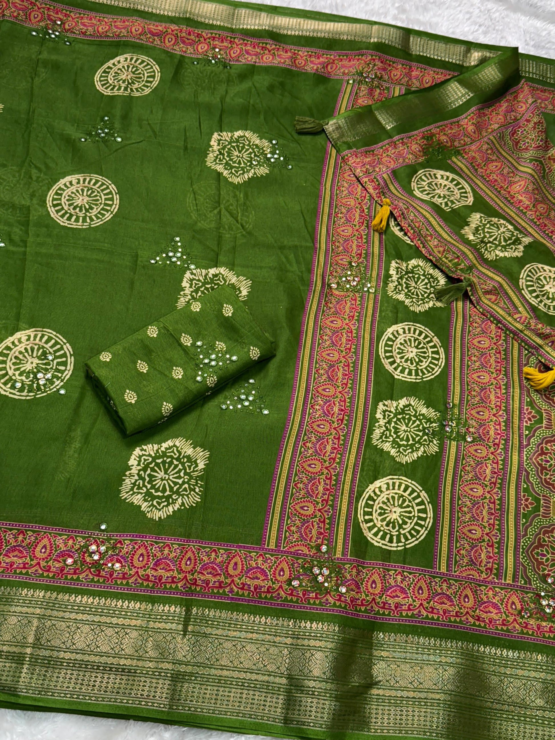 Effortless elegance meets vibrant charm with this Designer ajrakh printed beauty