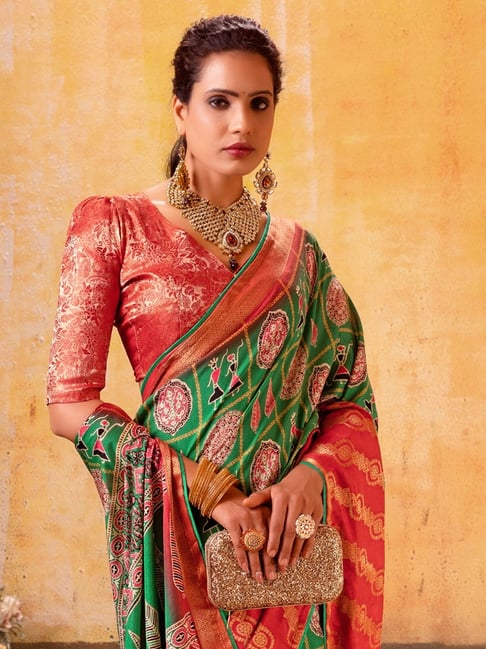 Green Pure Maslin Jeqard Silk Patan Patola Silk Saree