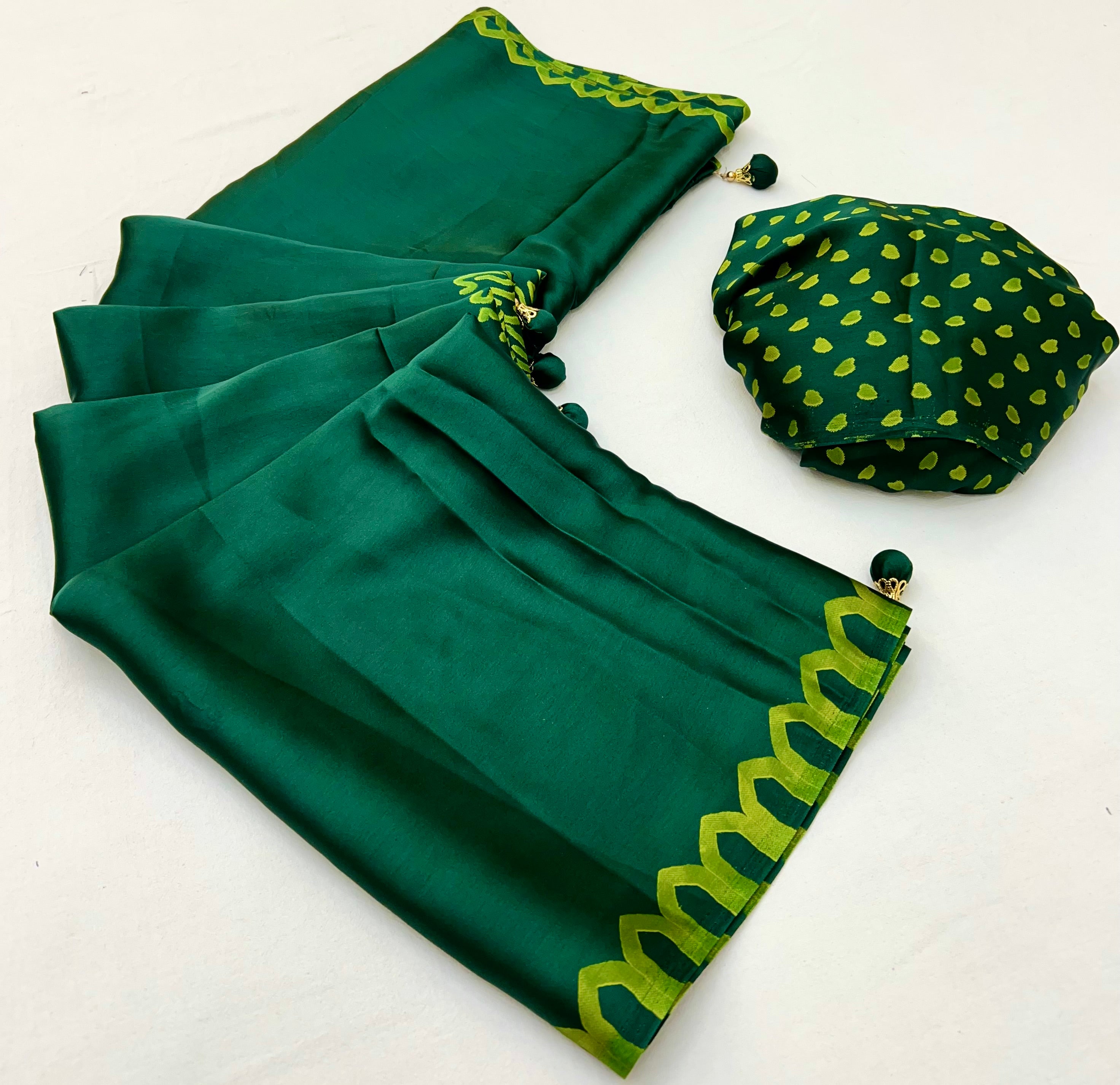 Green Pure Semi Modal Japan Silk Ajarkh Printed Saree
