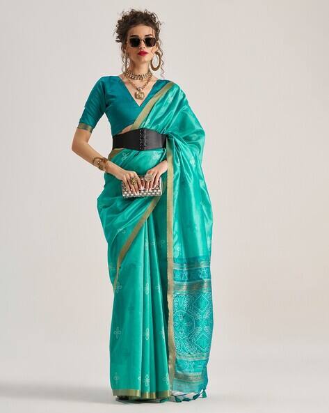 Green Pure Soft Art Silk Handloom Bandhej Print Saree