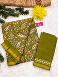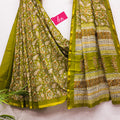Green Pure Soft Mal Mal Cotton Bagru Block Print Saree