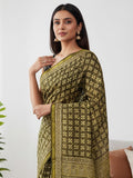 Green Pure Soft Mal Mal Cotton Bagru Block Print Saree