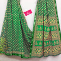 Green Pure Soft Mal Mal Cotton Bagru Block Print Saree