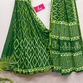 Green Pure Soft Mal Mal Cotton Bagru Block Print Saree